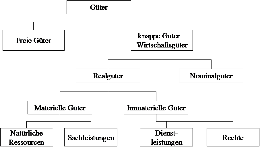 Güter dienen der Befriedigung der Bedürfnisse. Knappe Güter werden als Wirtschaftsgüter bezeichnet. Freie Güter stehen unbegrenzt zur Verfügung, sie stellen keine Wirtschaftsgüter dar.